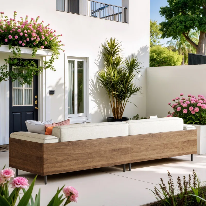 Bring the comfort of your living room outdoors. This modular outdoor sofa pairs breathable cotton-linen with washable cushion covers, so your space stays fresh, stylish, and low-maintenance. It’s where quiet mornings and late-night chats find their perfect seat—year after year.